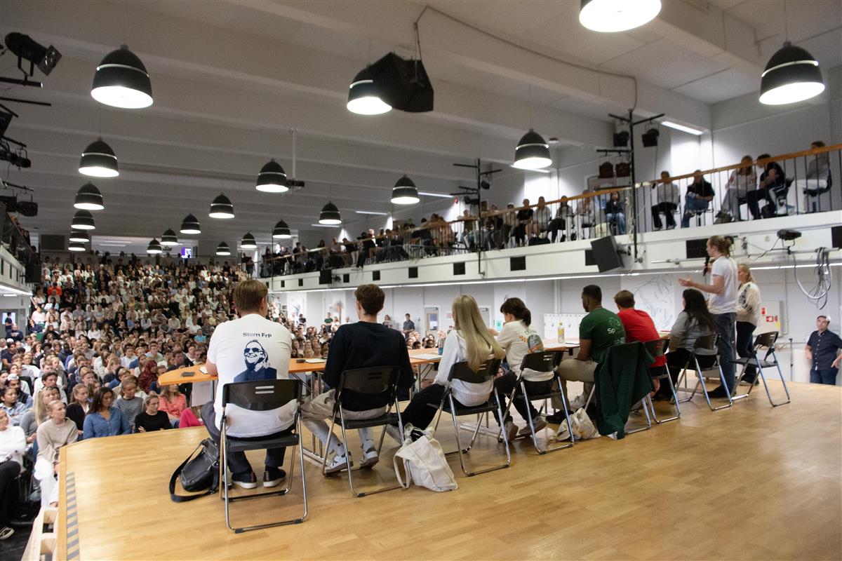 Rundt 700 elever fulgte skoledebatten på St. Hallvard videregående i Lier 20. august.